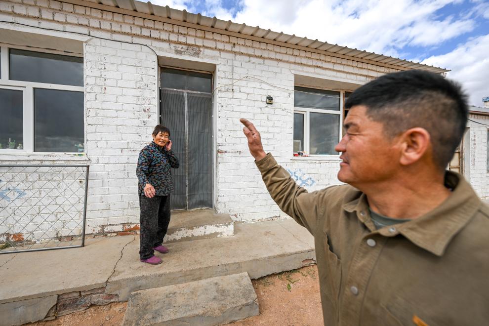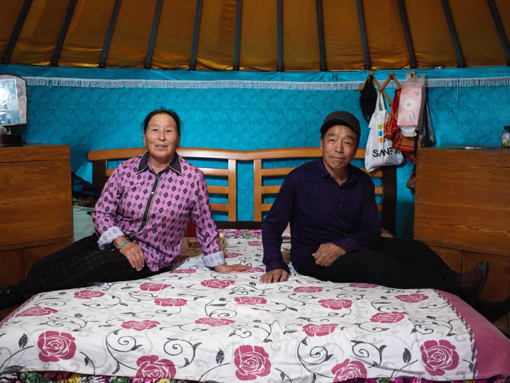 2025年9月23日,达来(右)与妻子合影。新华社记者 刘金海摄
