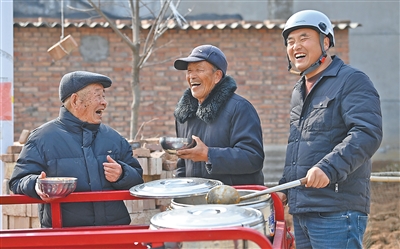 “晌午饭来了,取碗!”这一声洪亮吆喝来自秦岭北麓。陕西省西安市蓝田县三官庙镇里峪湾村党支部书记庞富强每天骑三轮车,为村里的老人送饭上门。