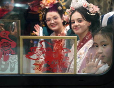 2月10日,“福满京城 春贺神州”2026年北京文化志愿者“送福到家”系列文化活动启动仪式在北京站启幕。活动通过民乐表演、送春联等方式,为南来北往的旅客打造了一场热闹的文化盛宴。新华社记者 常能嘉 摄2月10日,旅客展示由文化志愿者书写完成的“福”字。
