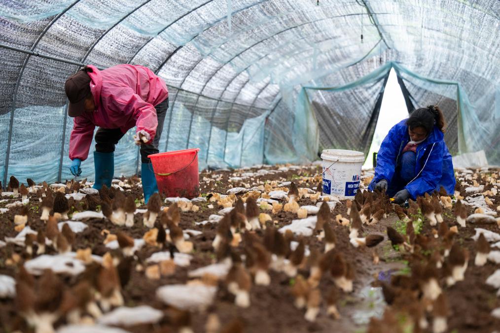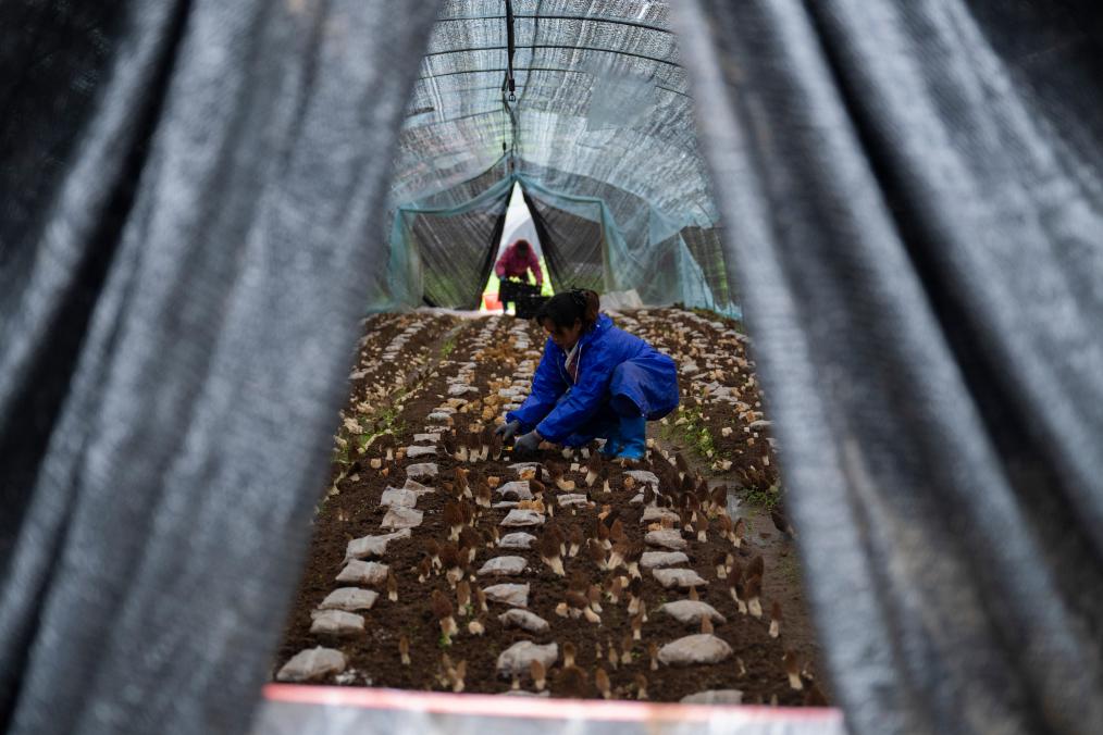 3月14日,宜昌市远安县旧县镇董家村村民在采摘羊肚菌。