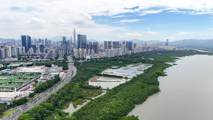 2025年8月,深圳福田红树林湿地(无人机照片)。新华社记者梁旭 摄