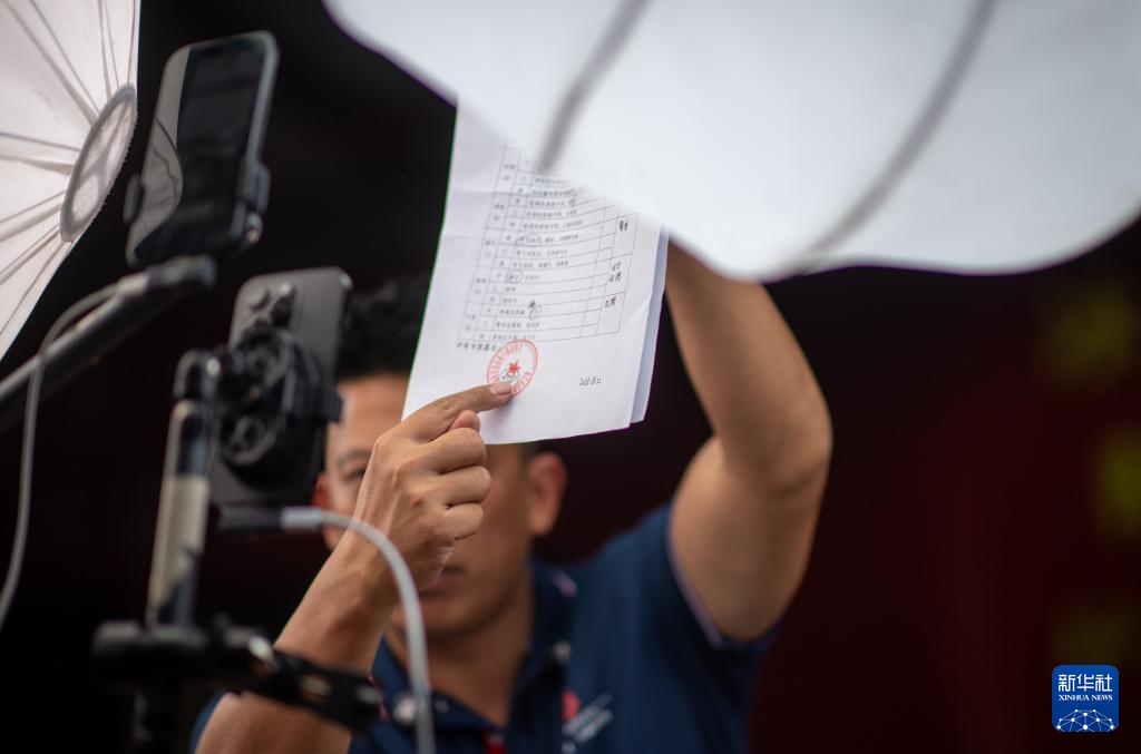 4月22日,云南省临沧市双江县主播在直播间展示品荐溯源报告。